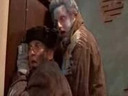 As Harry checks his teeth after the explosion, Marv climbs a stack of furniture to try and get back on the upper floor. As he reaches the top, the stack falls down, leaving him hanging. Kevin moves past them and Harry chases him up a ladder, which breaks under his weight. Marv climbs the rest of the way up and goes to Harry's aid.
